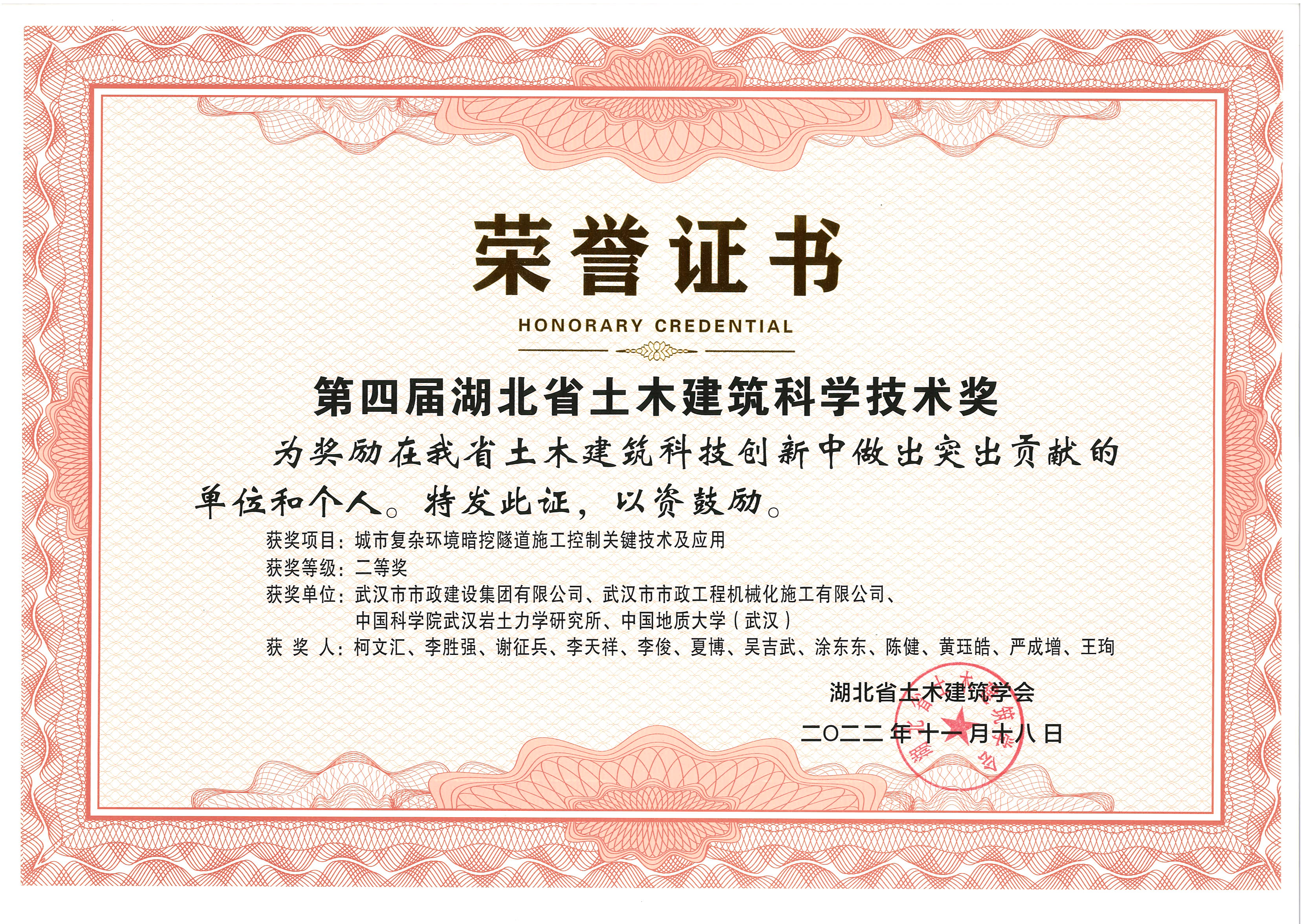 第四屆湖北省土木建筑科學(xué)技術(shù)獎