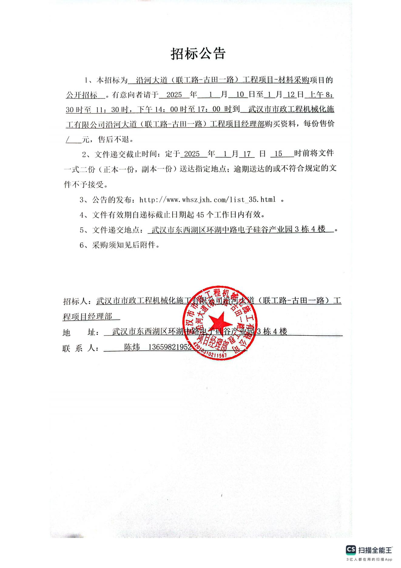 沿河大道(聯(lián)工路-古田一路)工程-材料采購招標(biāo)公告