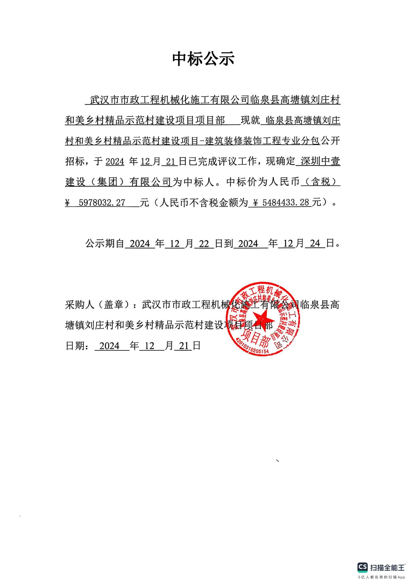 臨泉縣高塘鎮(zhèn)劉莊村和美鄉(xiāng)村精品示范村建設項目-建筑裝修裝飾工程專業(yè)分包中標公示