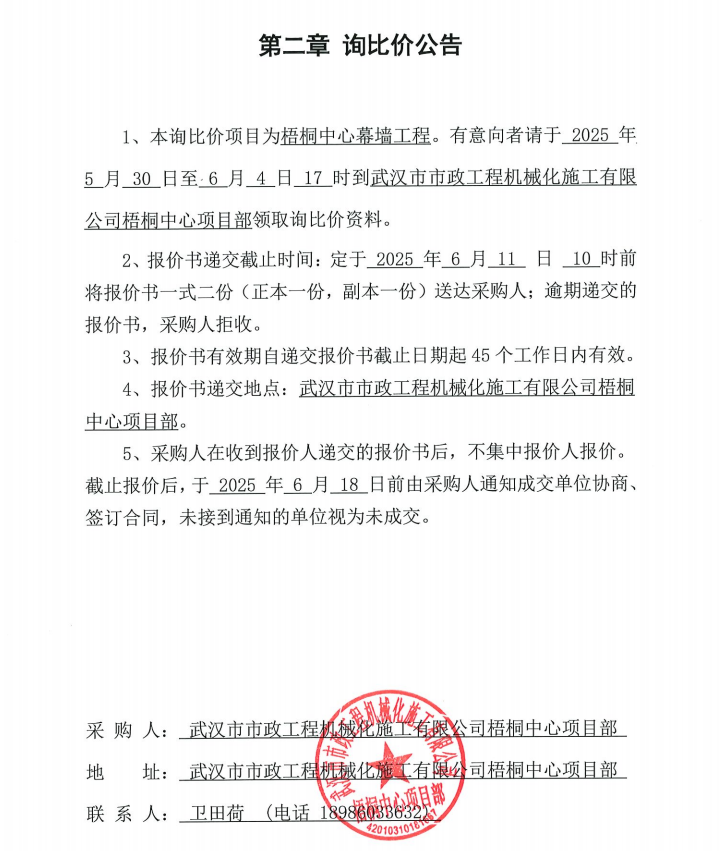 梧桐中心幕墻工程詢價公告