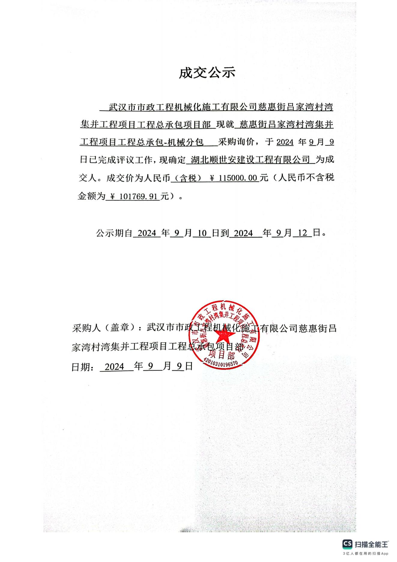 慈惠街呂家灣村灣集并工程項目工程總承包-機械分包成交公示