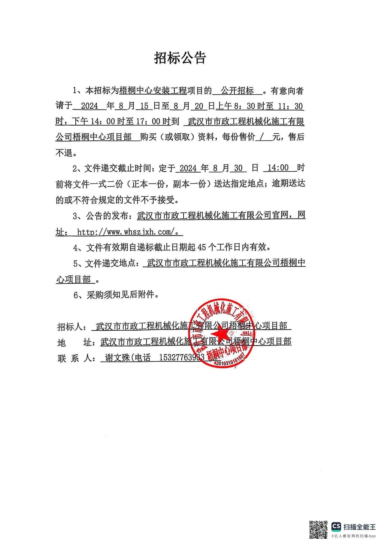 梧桐中心安裝工程招標(biāo)公告